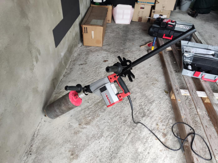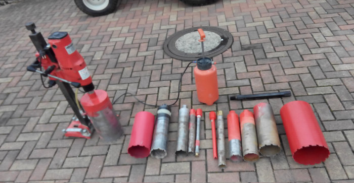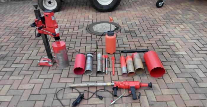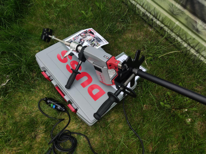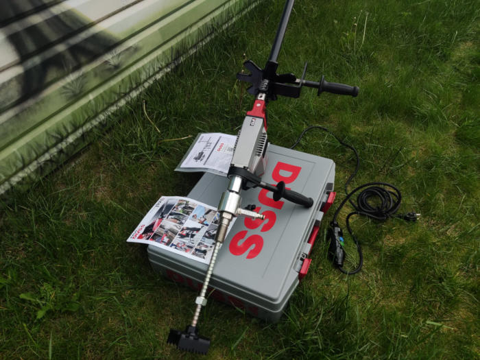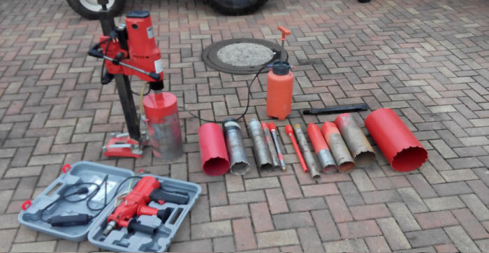 Kernbohrgerät Duss Anschlussbohrungen in Kanalrohre, Schächte auch in isolierte Wände die Umgebung der Bohrstelle wird nicht beschädigt