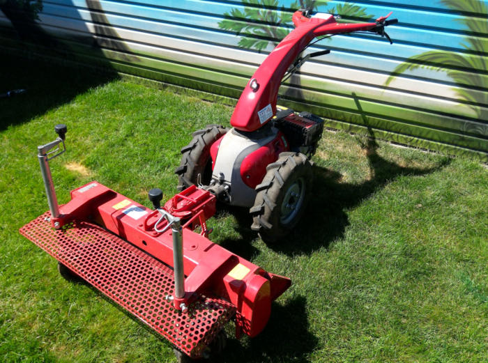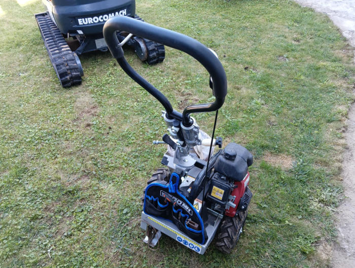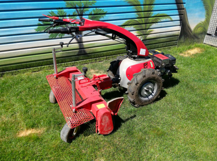 Hydrostatischer Einachser hier mit Bodenniveliergerät zb Rasenvorbereitung Steine entfernen usw.