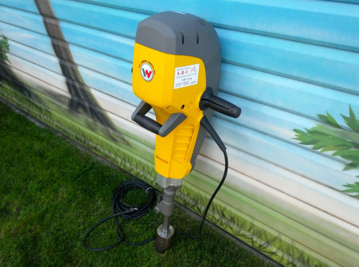 verdichten aber ohne Abgase dieser leichte Rüttler läst sich problemlos in den “Keller” tragen IDEAL für Naturkeller die man Pflastert