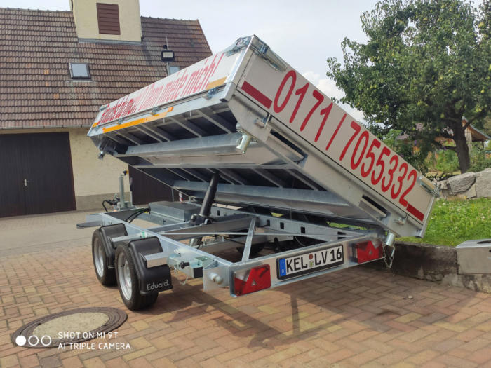 Dreiseitenkipper elektrisch zGG. 3,5to Nutzlast 2700kg er kann rundum mit hohen Bordwänden verkleidet werden zb. für Rindenmulchtransport