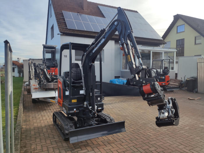 610 kg Kampfgewicht mit Reiszahn oder Greifer natürlich bibt es auch Tieflöffel 20, 30, 60cm dazu