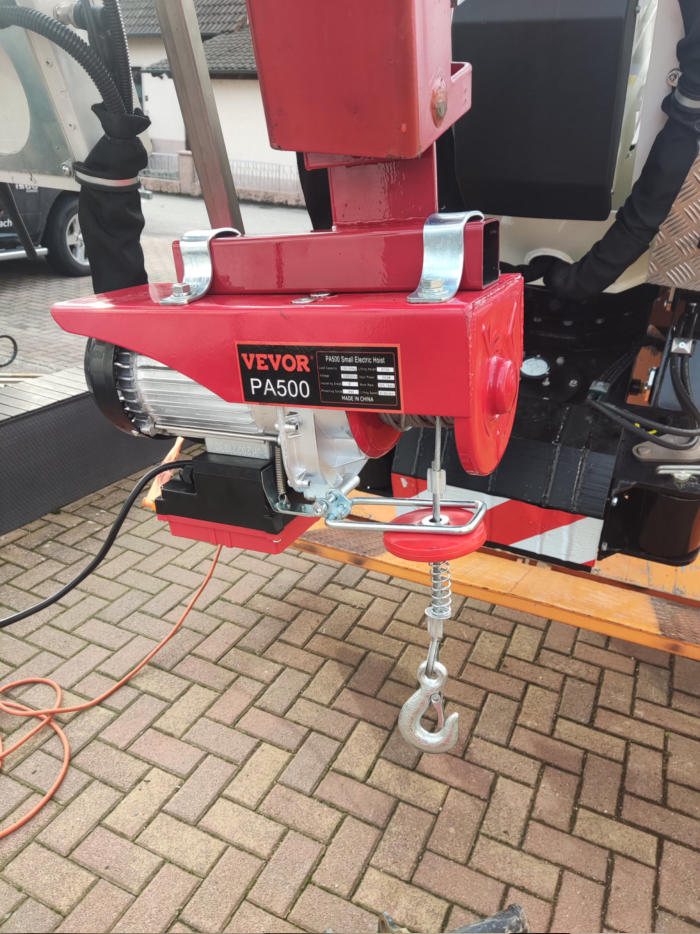 eine Maschine in dieser Preisklasse verdient zwei Bilderreihen ein Kranbetrieb ( Funkseilwinde ) bis 260 kg ist ebenfalls möglich am ende der Liste