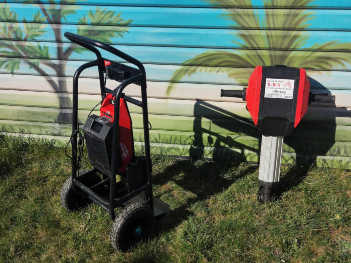 Milwaukee Abbruchhammer AKKU Betrieben mit Transportwagen, Ladegerät und zweitem Akku auch zum Brunnenschlagen!